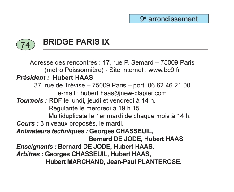 Bridge club du 11e
