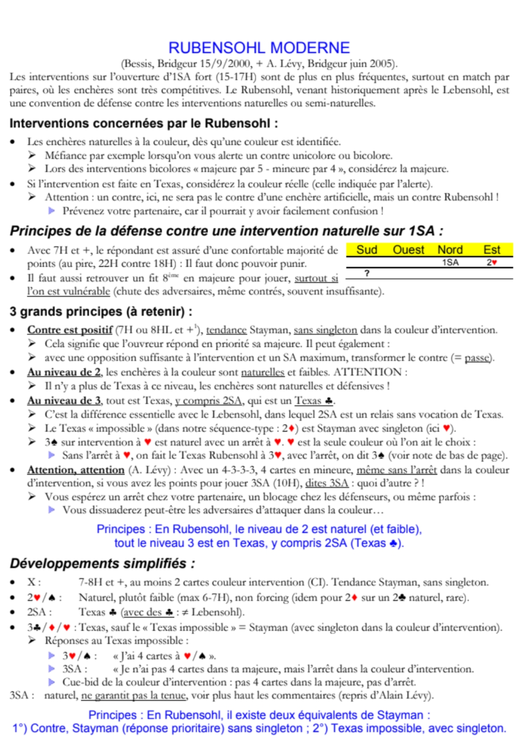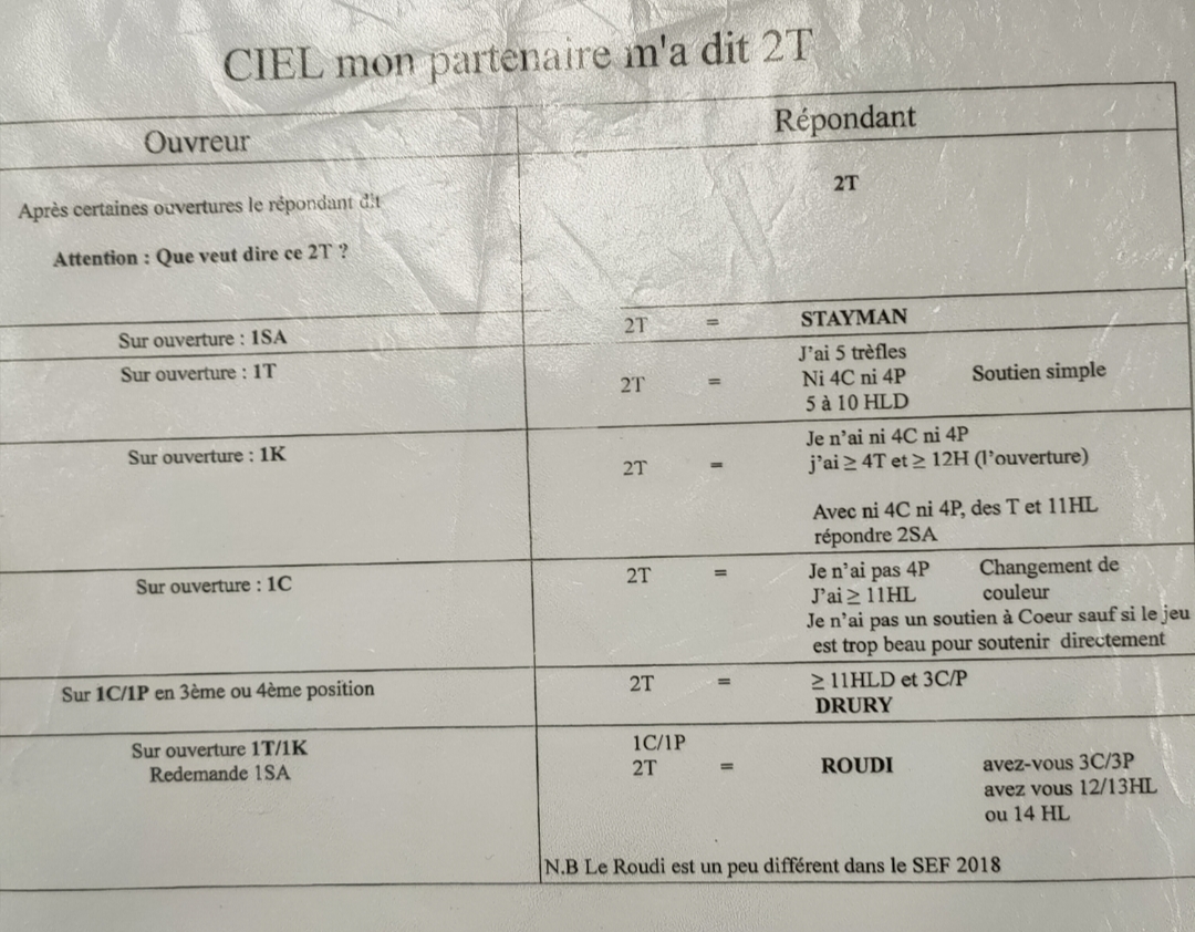 Développement après réponse de 3 trèfles sur ouverture de 2 SA